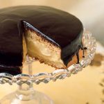 After it is baked, cut the cake in half horizontally and spread the pastry cream between the two slices- sandwich-style. Chill it for at least 2 hours. Melt the remaining cream with the corn syrup and chocolate. Make sure the mixture is smooth and cooled, and then pour it over the cake, letting it drip down the edges.